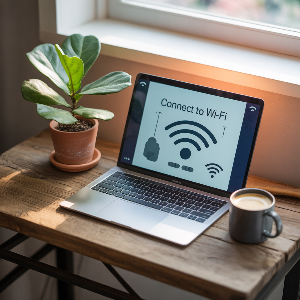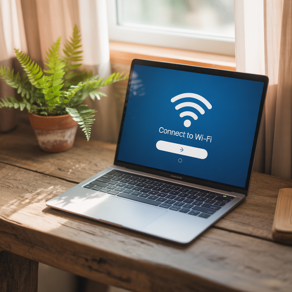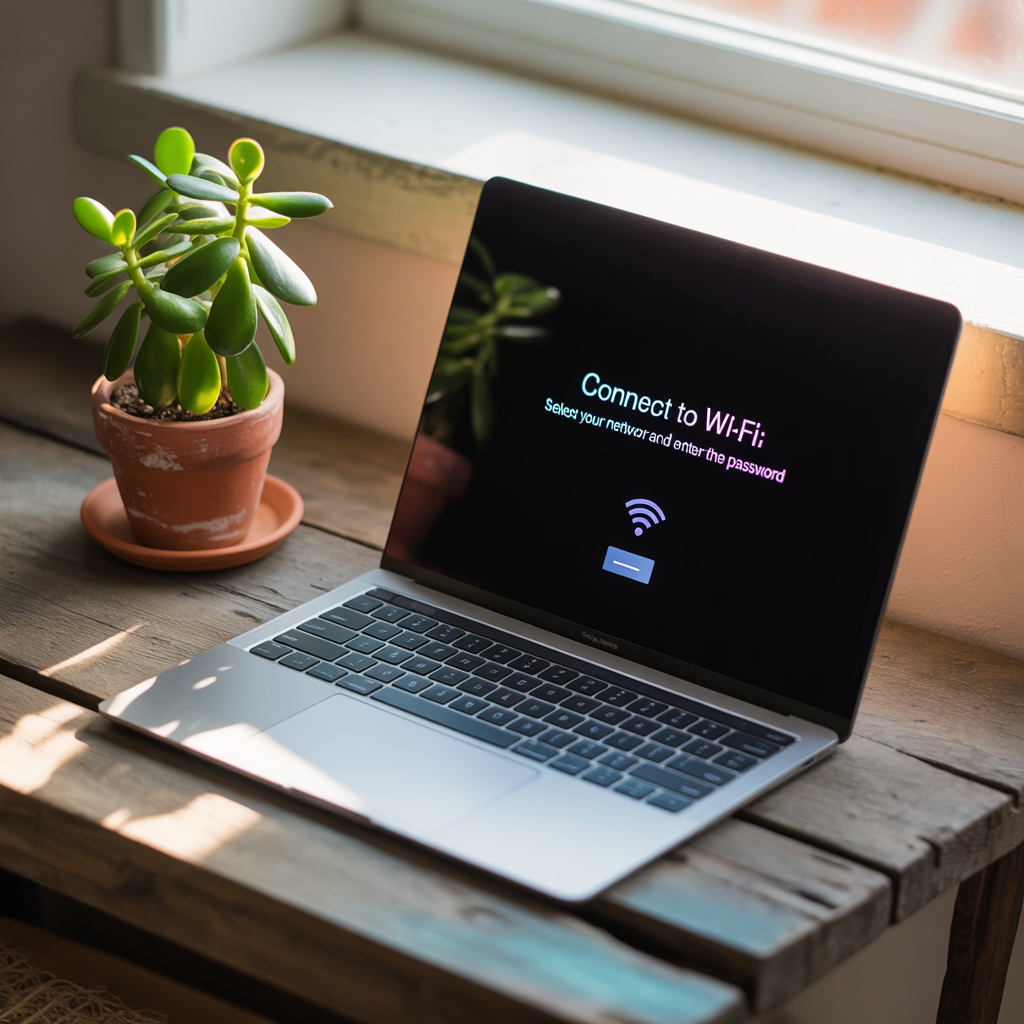 - 메뉴바 Wi-Fi 아이콘 → 네트워크 선택 → 비밀번호 입력.